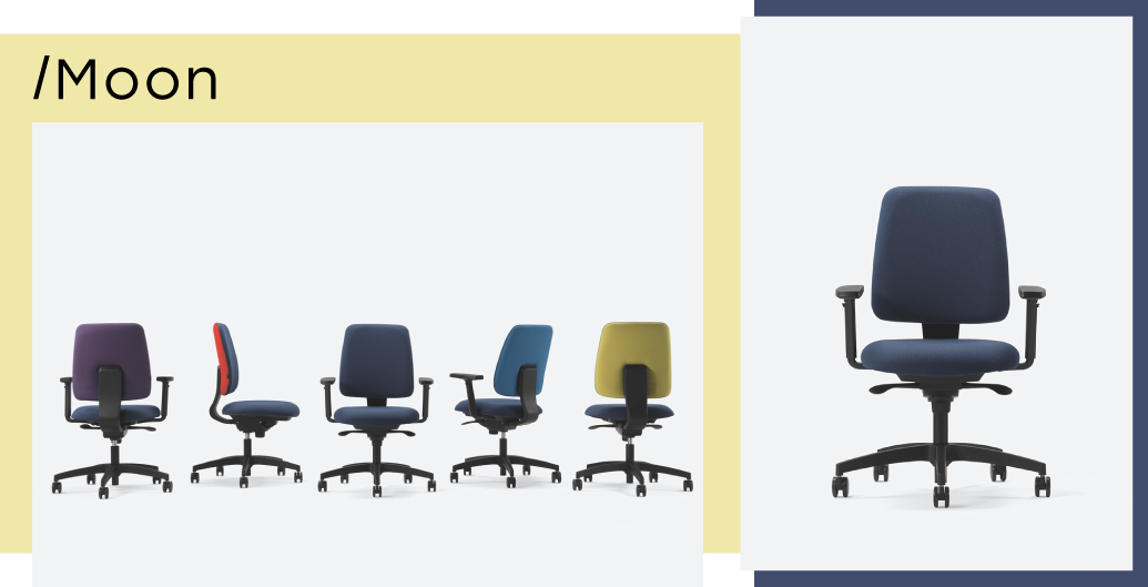 The Moon Task Chair is a smart solution for people looking for a simple design with soft shapes. Thanks to its versatile design the chair easily adapts to various types of spaces, adding colour with the backrest, available in single or bi-colour.
