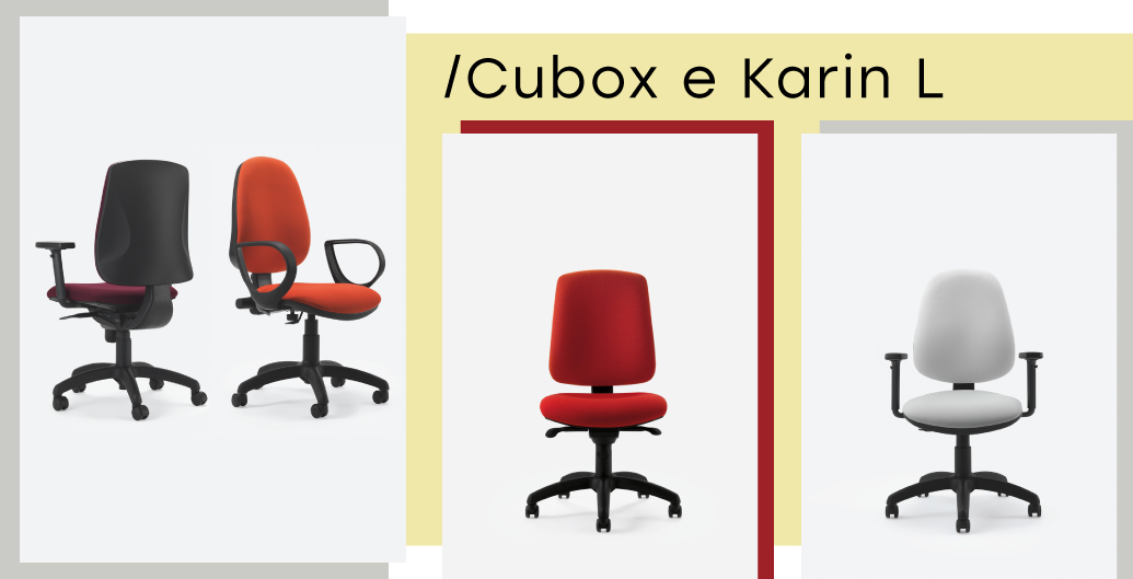 The padded backrest of Cubox can be adjusted to five positions, a bonus for people who work seated for many hours, while Karin L is built with permanent contact, offering excellent comfort. In addition to the possibility of inserting adjustable and fixed armrests, this chair can be lined with various types of fabrics, from the most neutral, such as red or grey, to brighter, being able to choose, at one’s own discretion, the most suitable colour for adding colour to one’s spaces and personality.