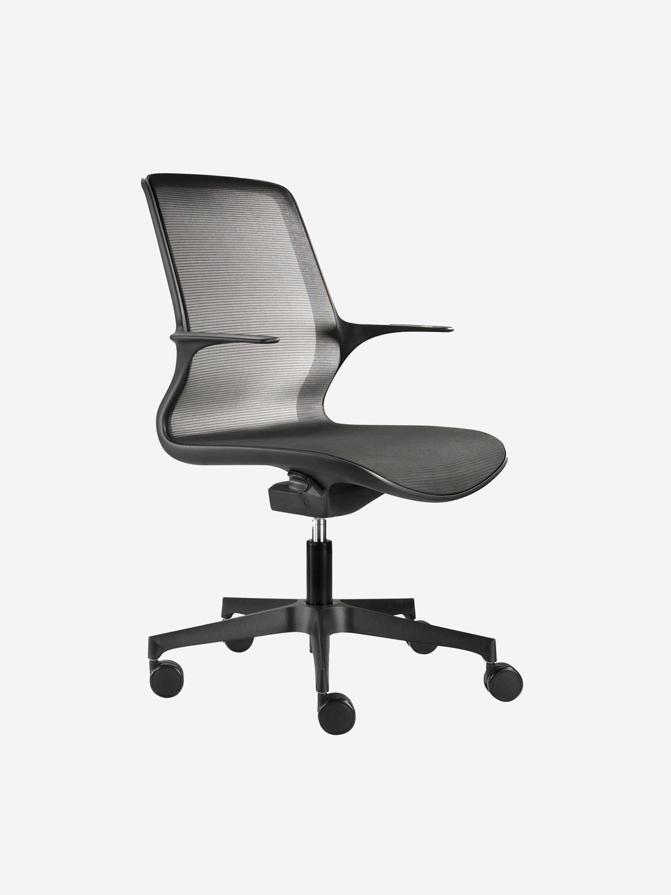 Loop is a collection with a dynamic design, created to suit different aesthetic and functional needs. The plastic shell is available with a mesh cover for a more technical look. The tilting mechanism ensures excellent comfort in every configuration.