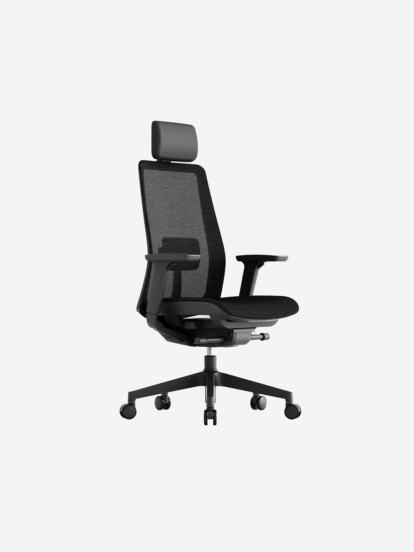 Ergonomic operative chair with mesh backrest and seat, removable and adjustable headrest, height- and depth-adjustable lumbar support, 4D armrests, synchronized mechanism, and seat slider.