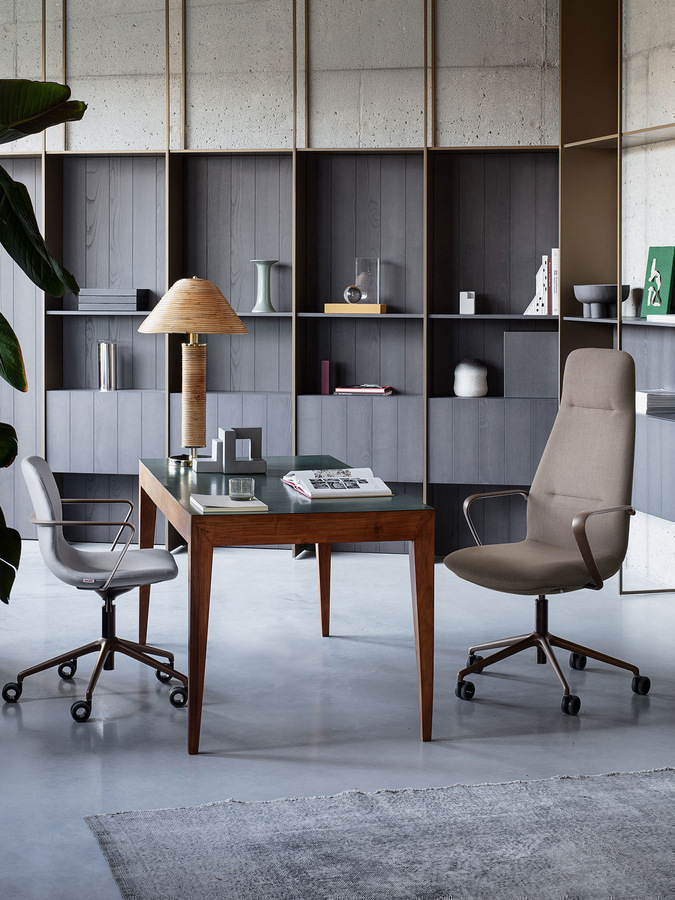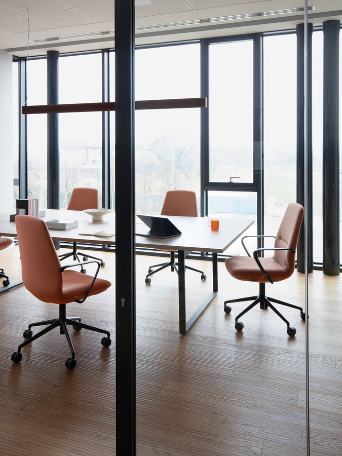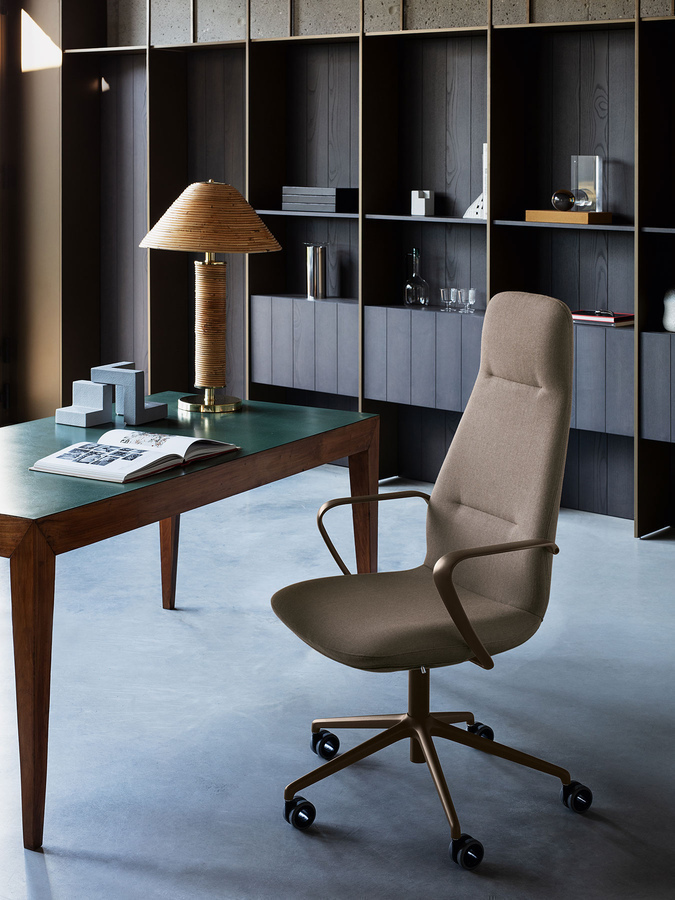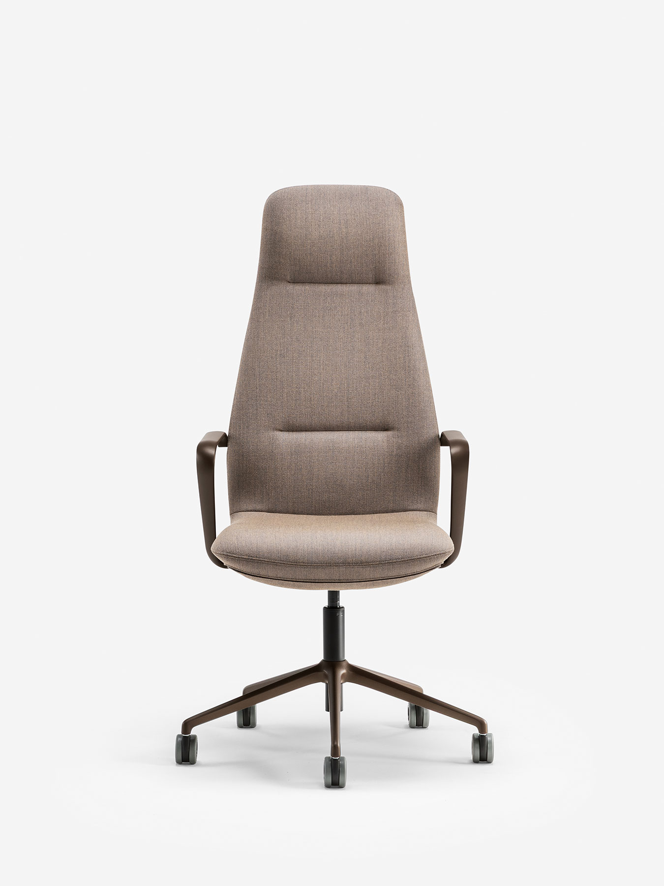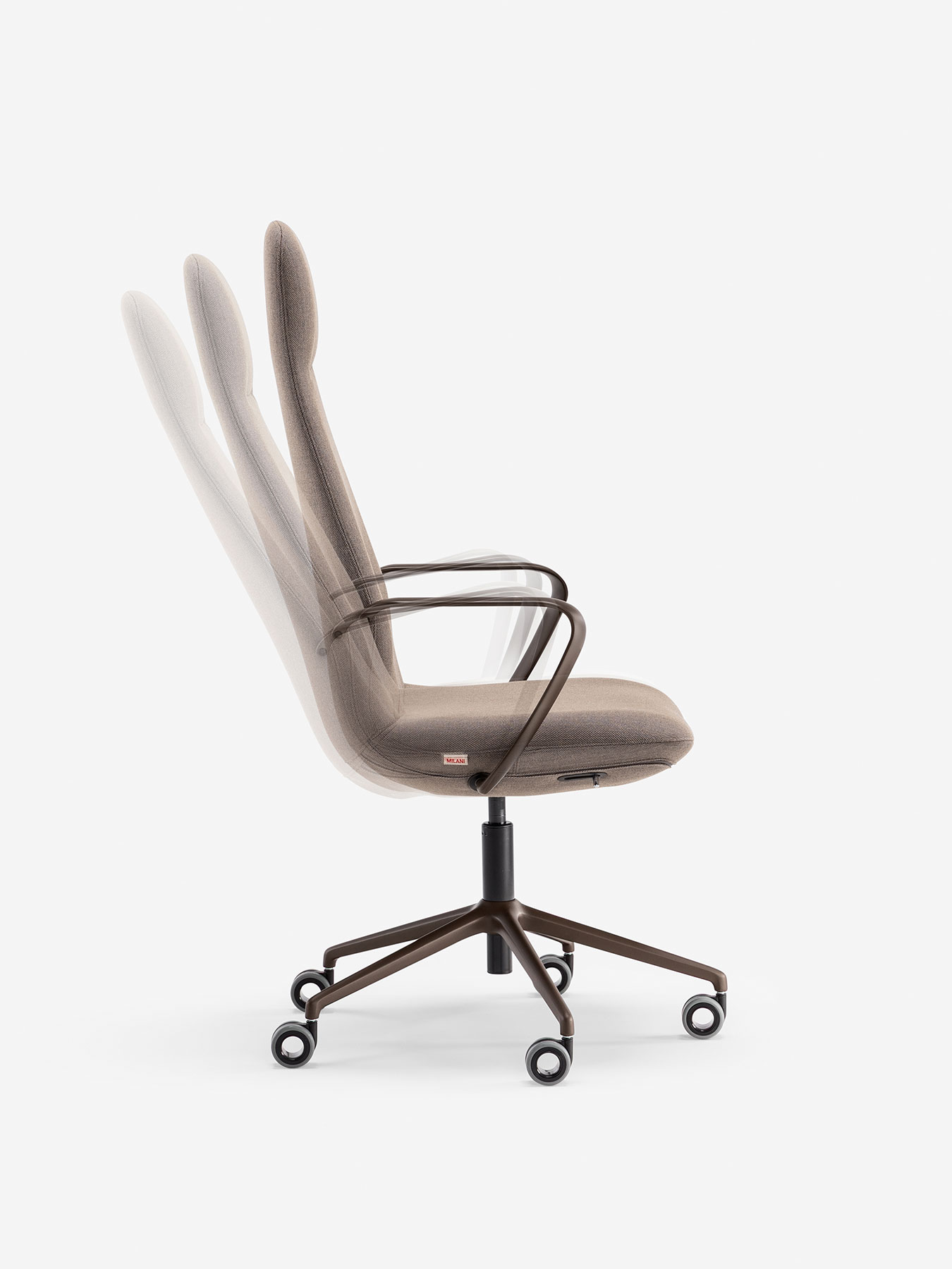 Synua is an executive chair that combines sinuous elegance with advanced technology. The seat and backrest form a seamless monocoque structure, integrating a cutting-edge synchronized mechanism that follows the body's movements, supporting both relaxed and working positions. The result is a chair that fits like a glove—extremely comfortable and refined.