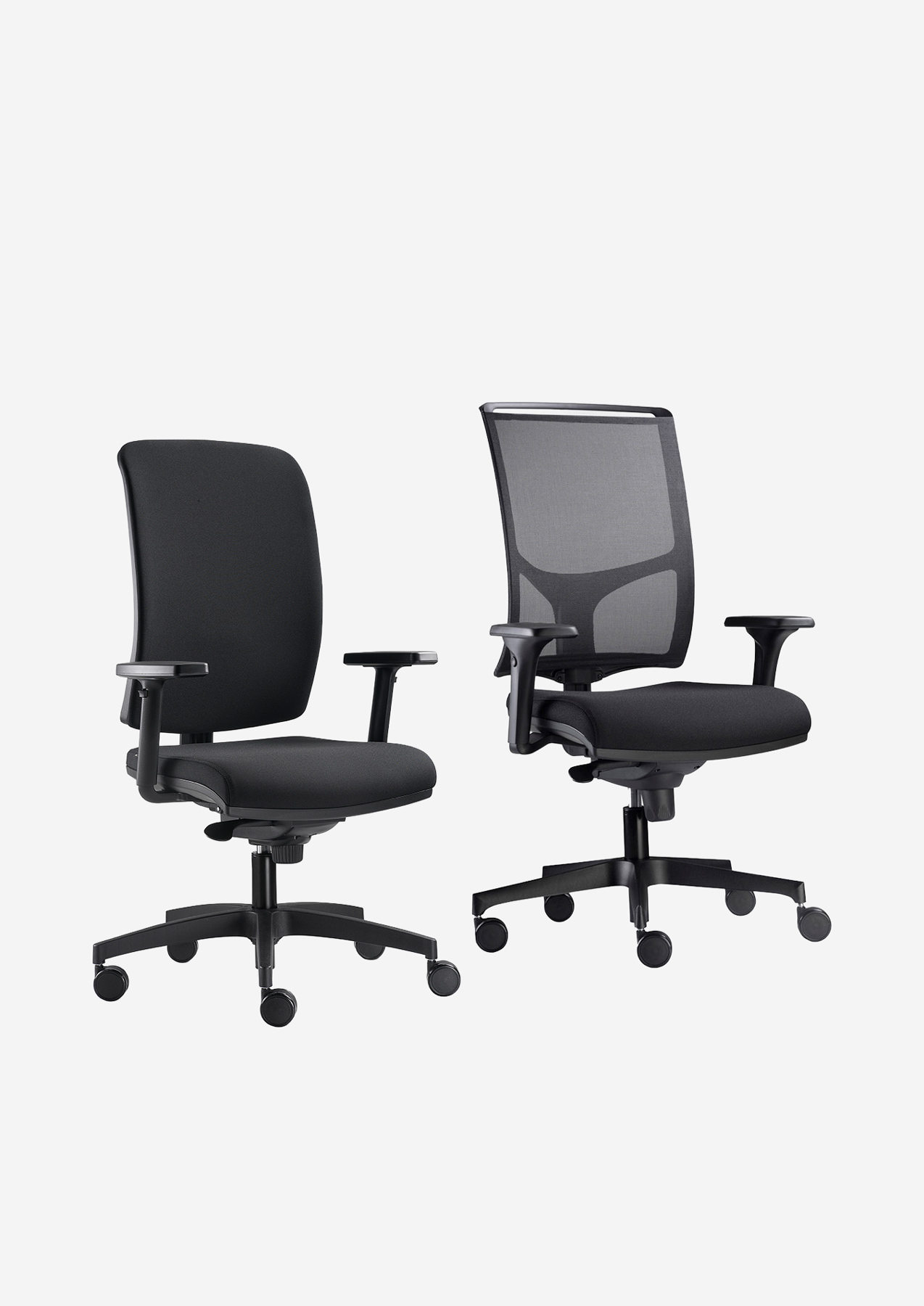 Chaise opérative ergonomique avec dossier résille ou captonné réglable en hauteur et soutien lombaire réglable en hauteur et en profondeur. Équipé d’un mécanisme synchronisé.