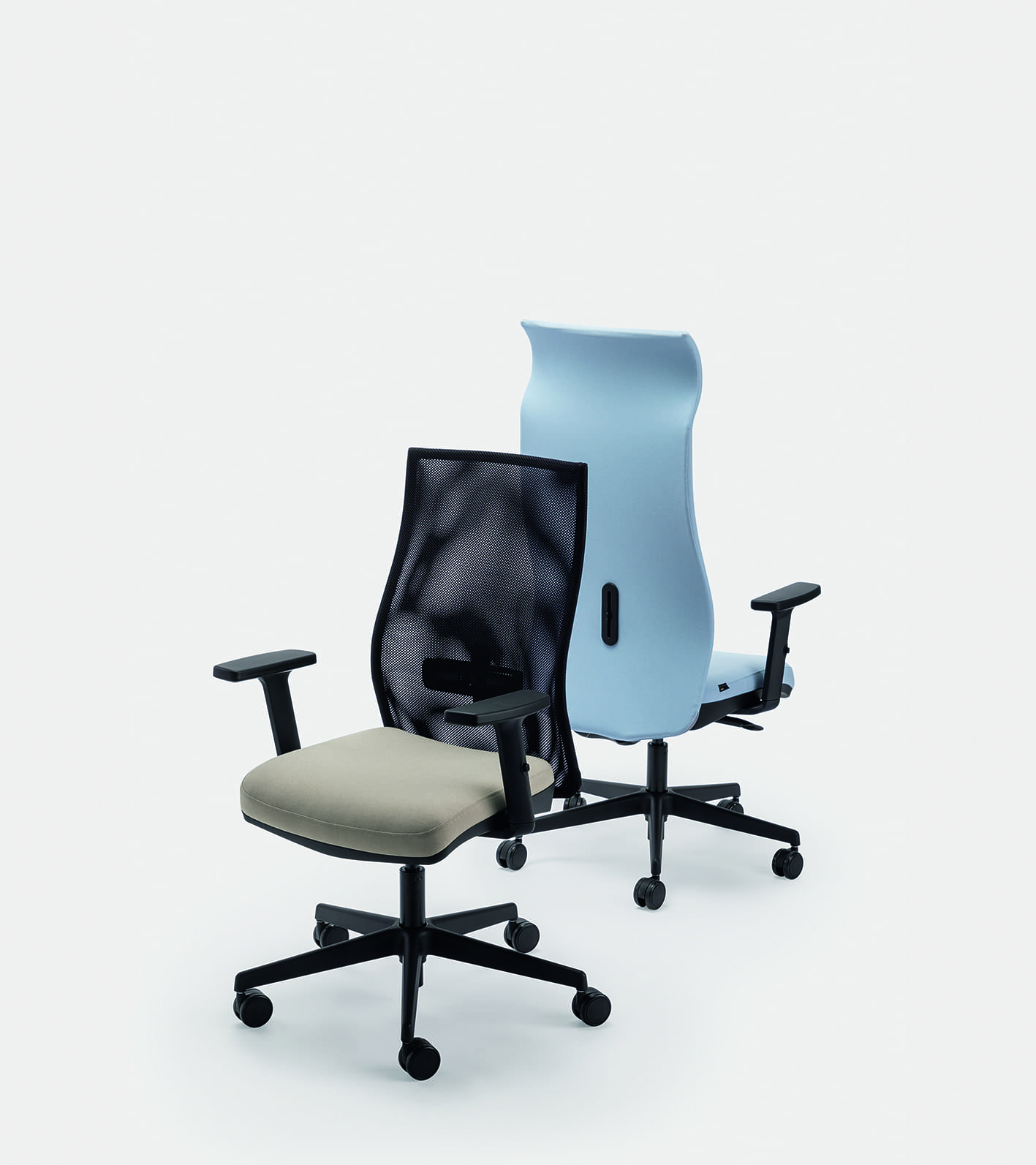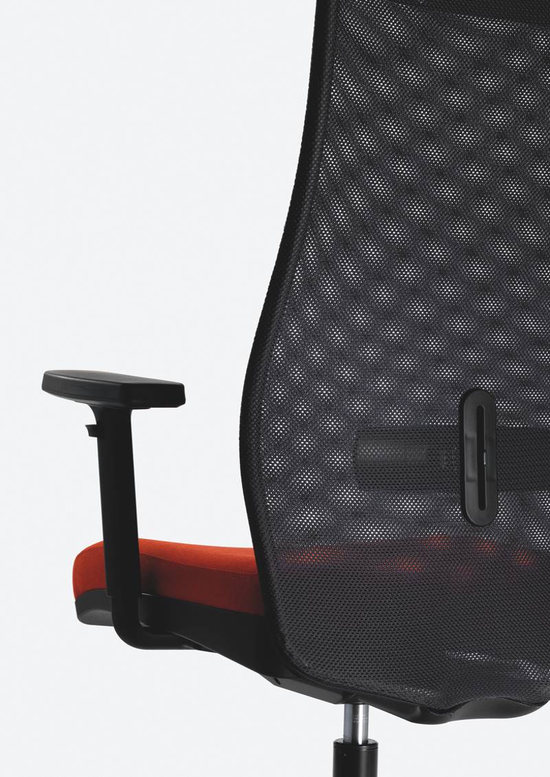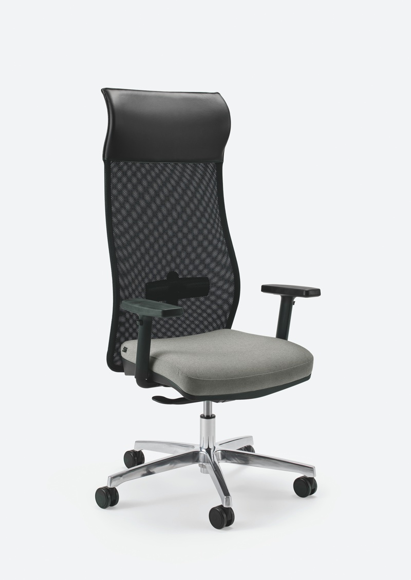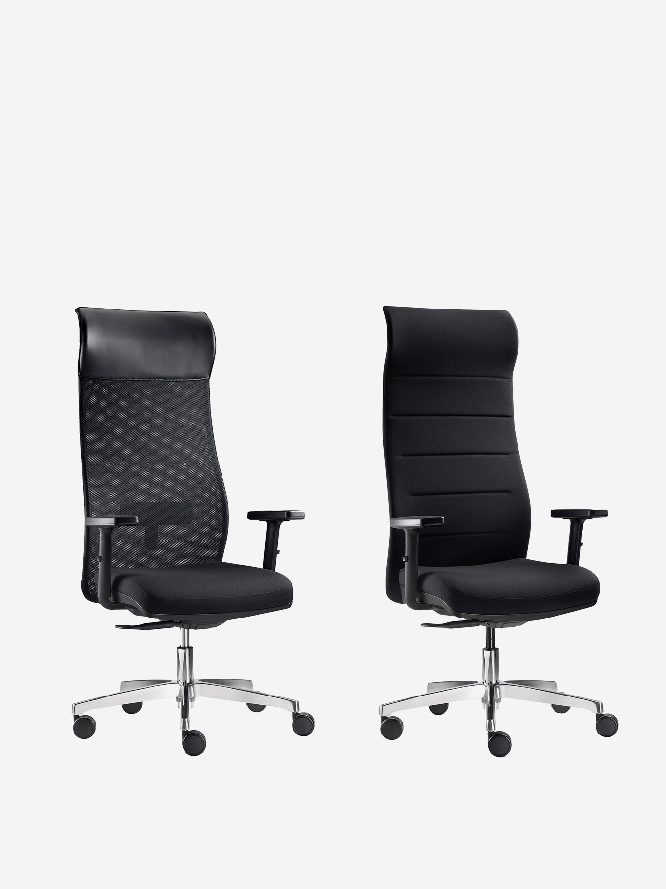 Fauteuil direction dossier haut et moyen, avec mécanisme synchrone automatique, disponible en résille ou capitonné, avec soutien lombaire réglable.