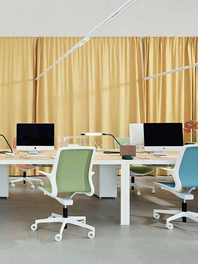 Loop est une collection aux lignes dynamiques offrant de multiples interprétations. Sa structure en plastique peut être habillée de résille pour un aspect technique, de tissu dans des tons neutres pour une touche élégante, ou de tissu coloré pour un style plus frais. Le mécanisme d’inclinaison garantit un excellent confort d’assise.