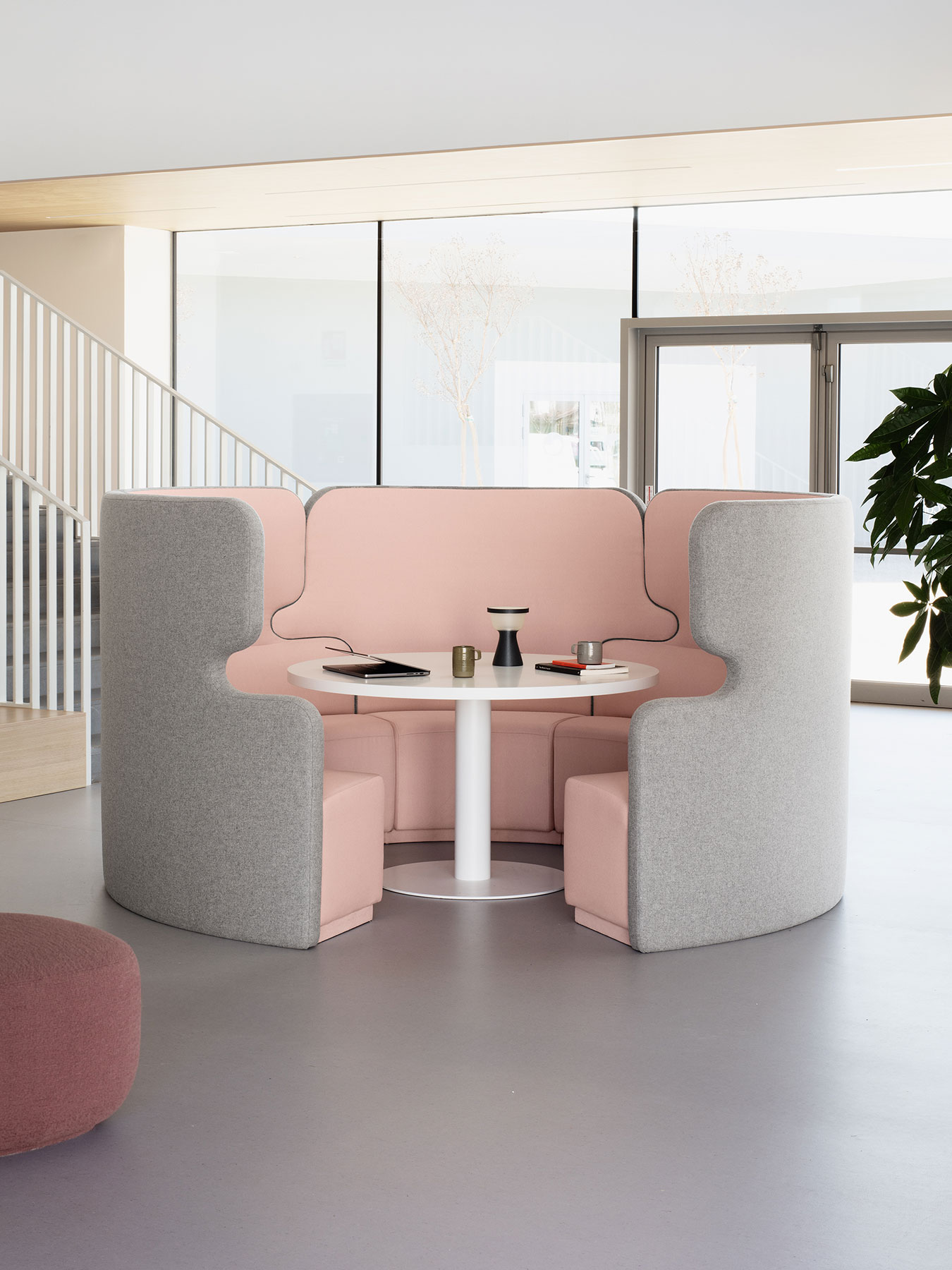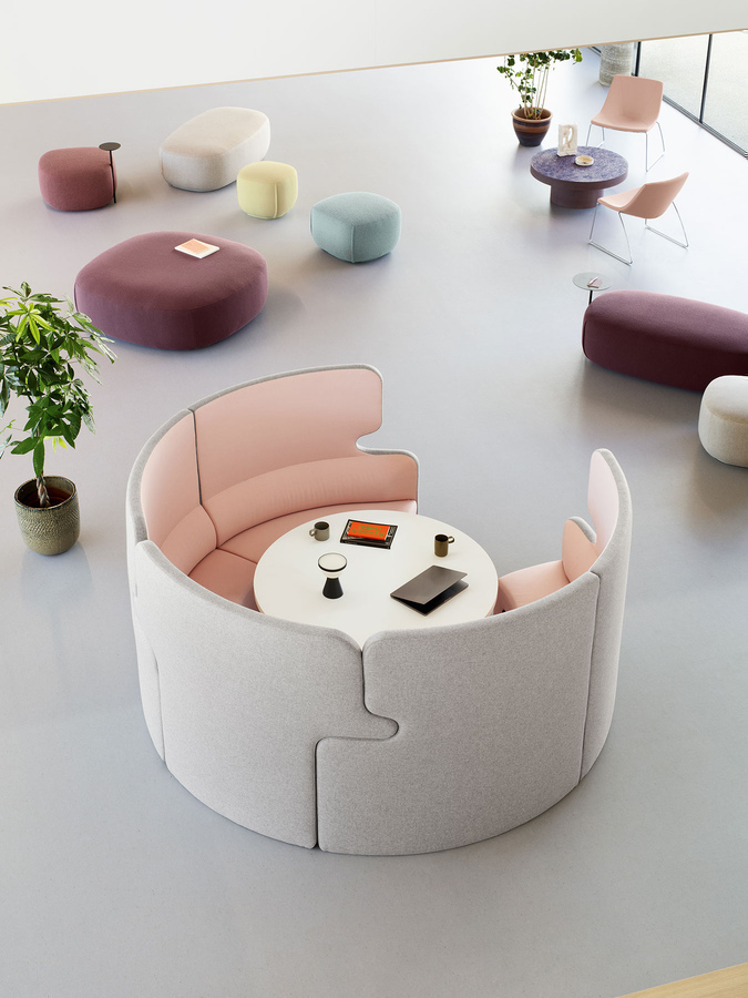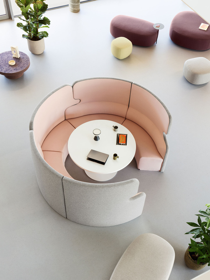 Faisant partie de la collection People conçue par Alessandro Crosera, People Talk est une cabine de réunion circulaire qui reprend l’esthétique compacte et les modules arrondis typiques de la gamme. Proposée en quatre configurations, ouvertes ou fermées, elle peut accueillir jusqu’à huit personnes et transforme les espaces de travail en lieux de relation et de convivialité.