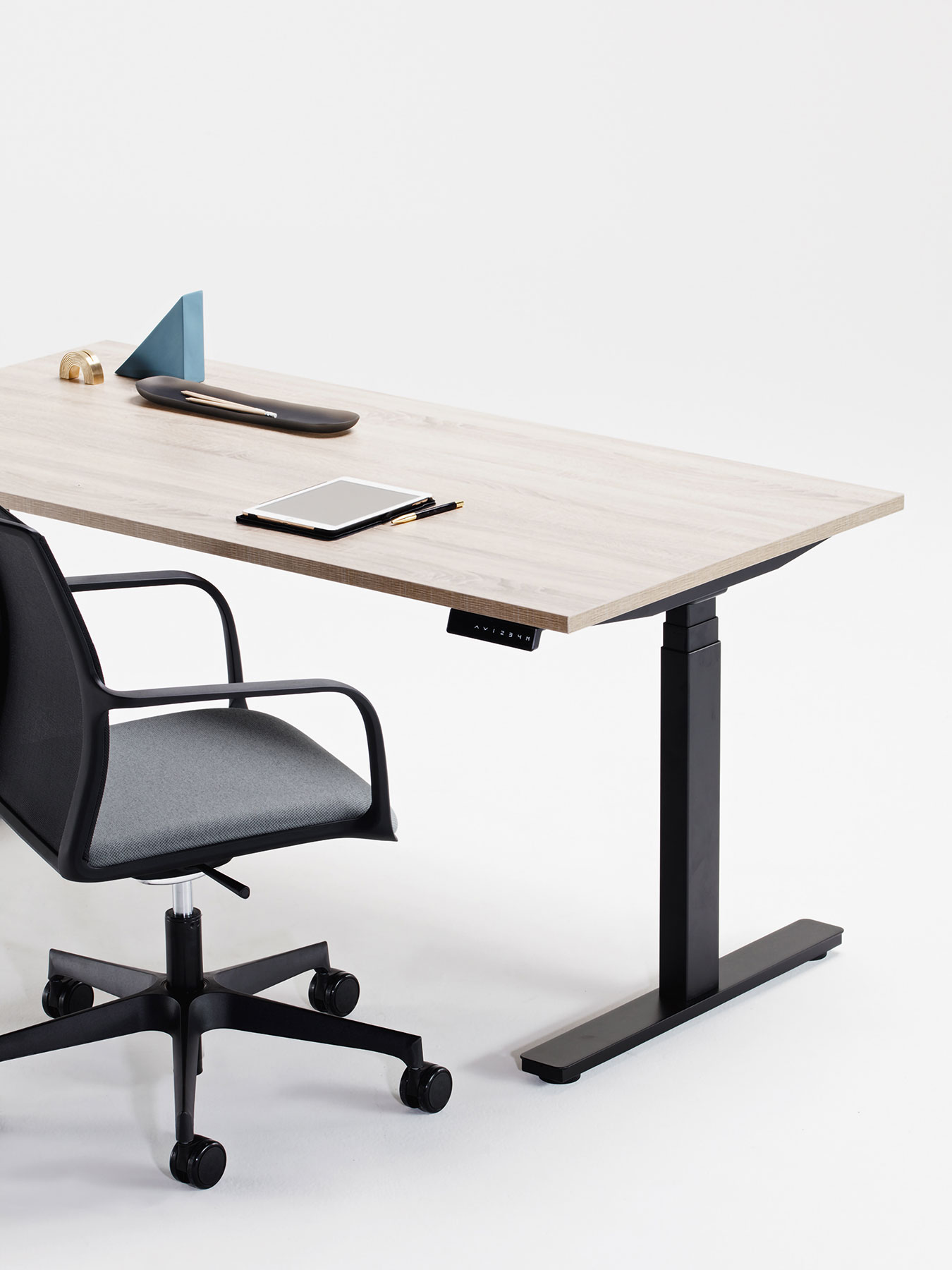 Skrive c'est un bureau réglable en hauteur électriquement, au design simple et contemporain. La possibilité de varier la hauteur selon les besoins en fait un produit ergonomique, adapté à tous les environnements de travail. Ils sont personnalisables en combinant trois finitions de plateau avec trois options de structure.