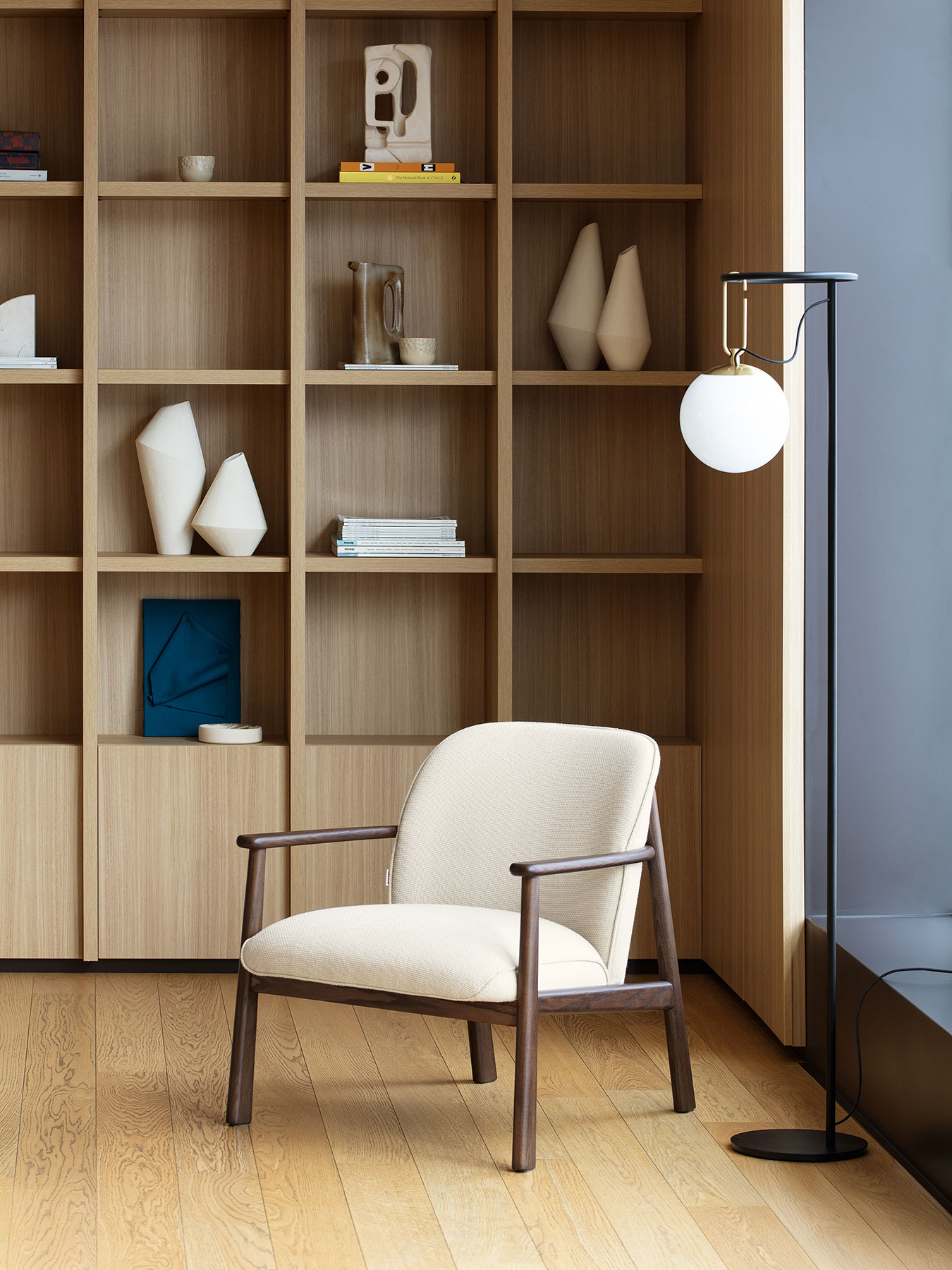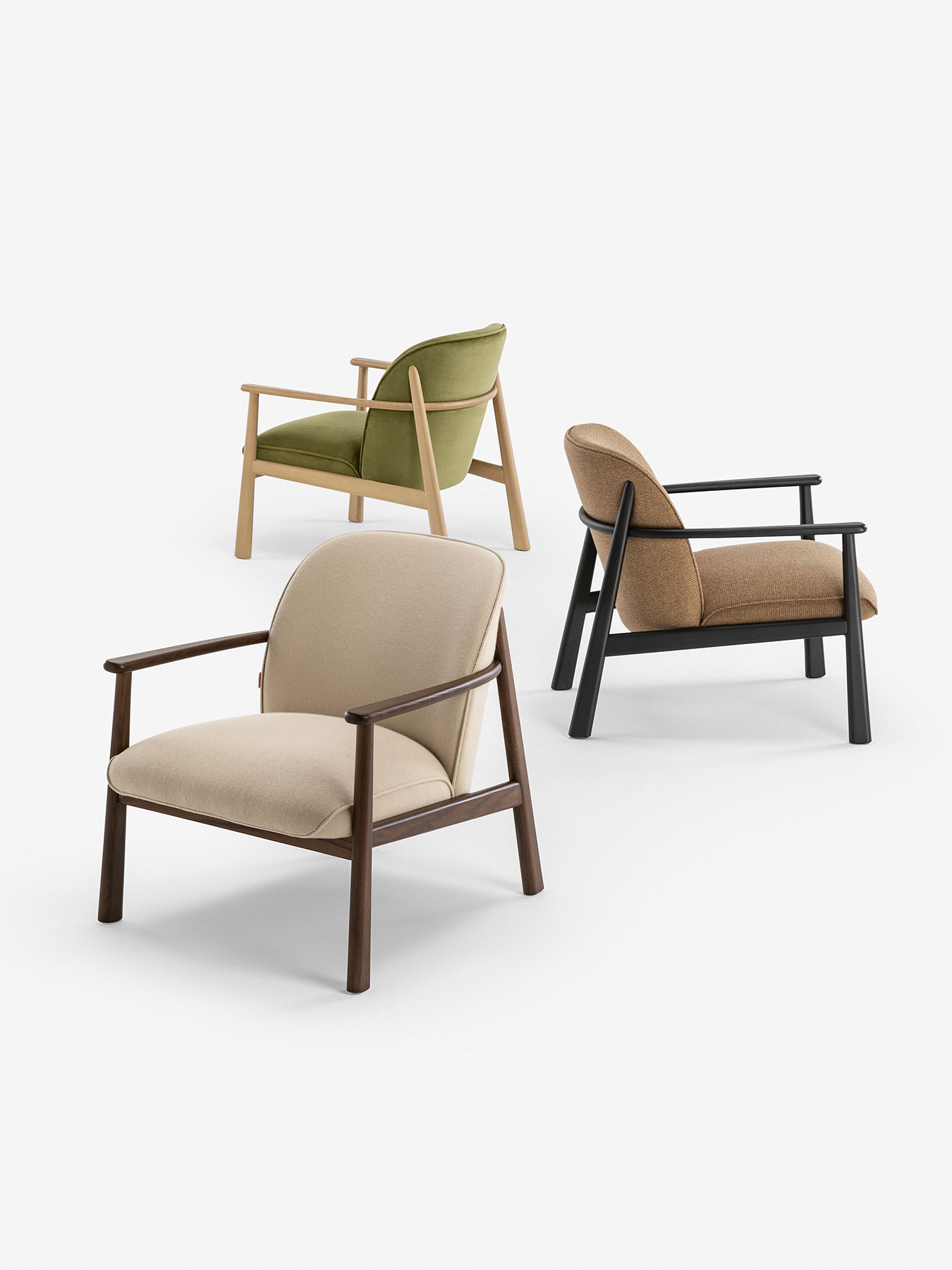 Astrid è una collezione composta da poltroncina e divano a due posti che rilegge il design degli anni Sessanta con un lessico contemporaneo. Disegnata da Matteo Zorzenoni, è pensata per il soft contract, un concetto che descrive gli ambienti collettivi in cui il comfort, anche visivo, si rivela necessario. La struttura in legno di faggio abbraccia morbidi cuscini sagomati, in un equilibrio perfetto tra estetica e funzionalità.