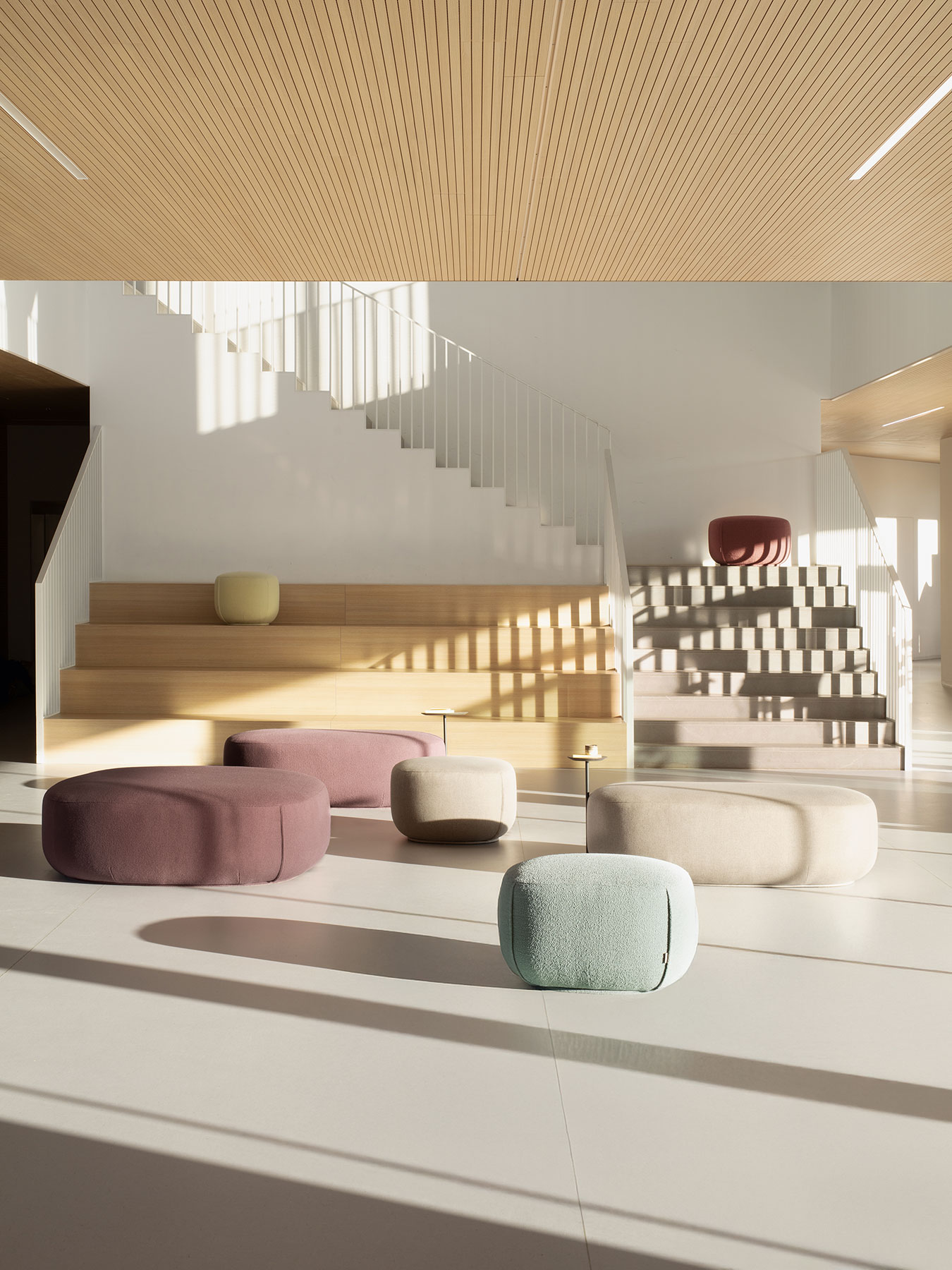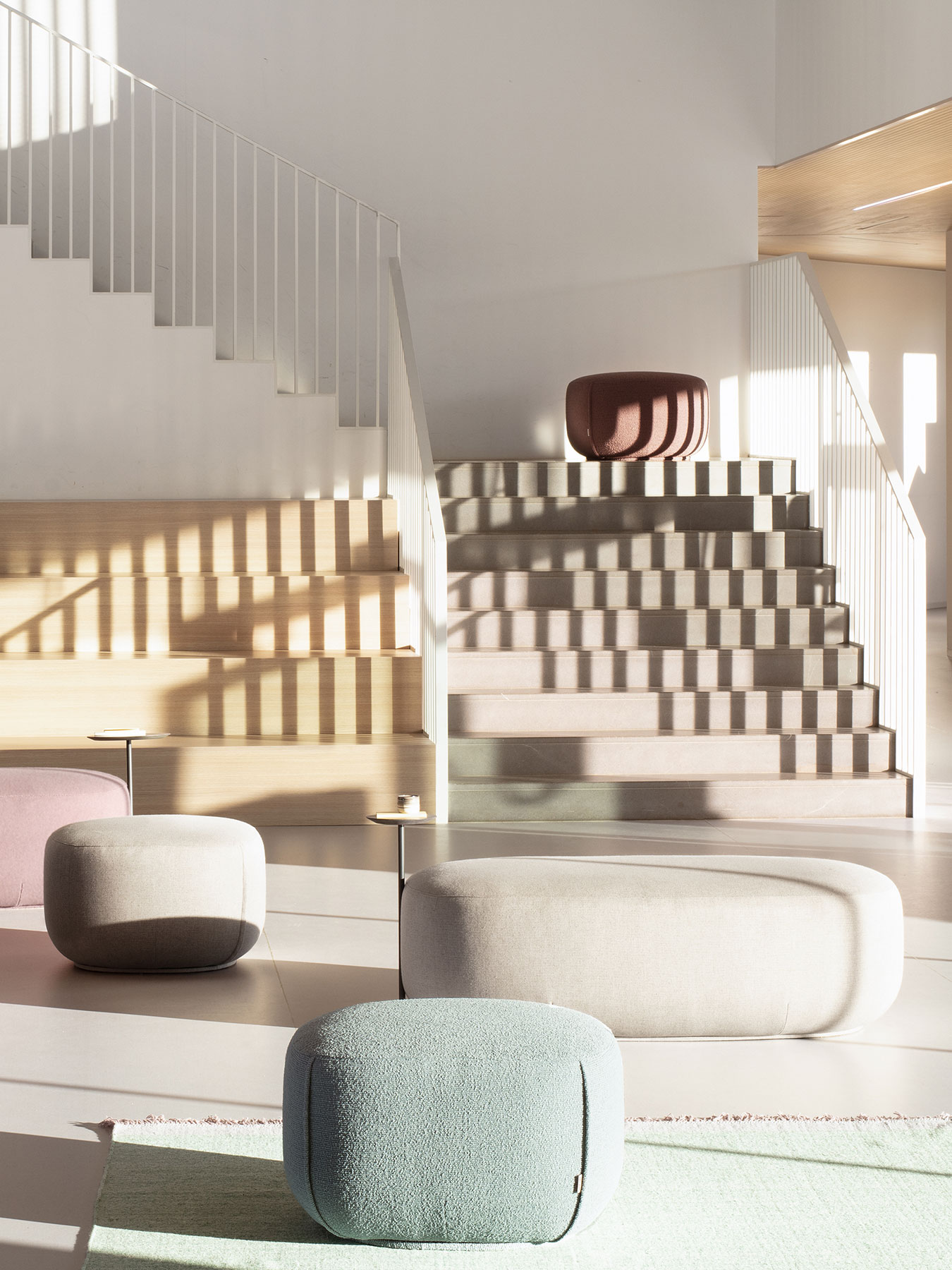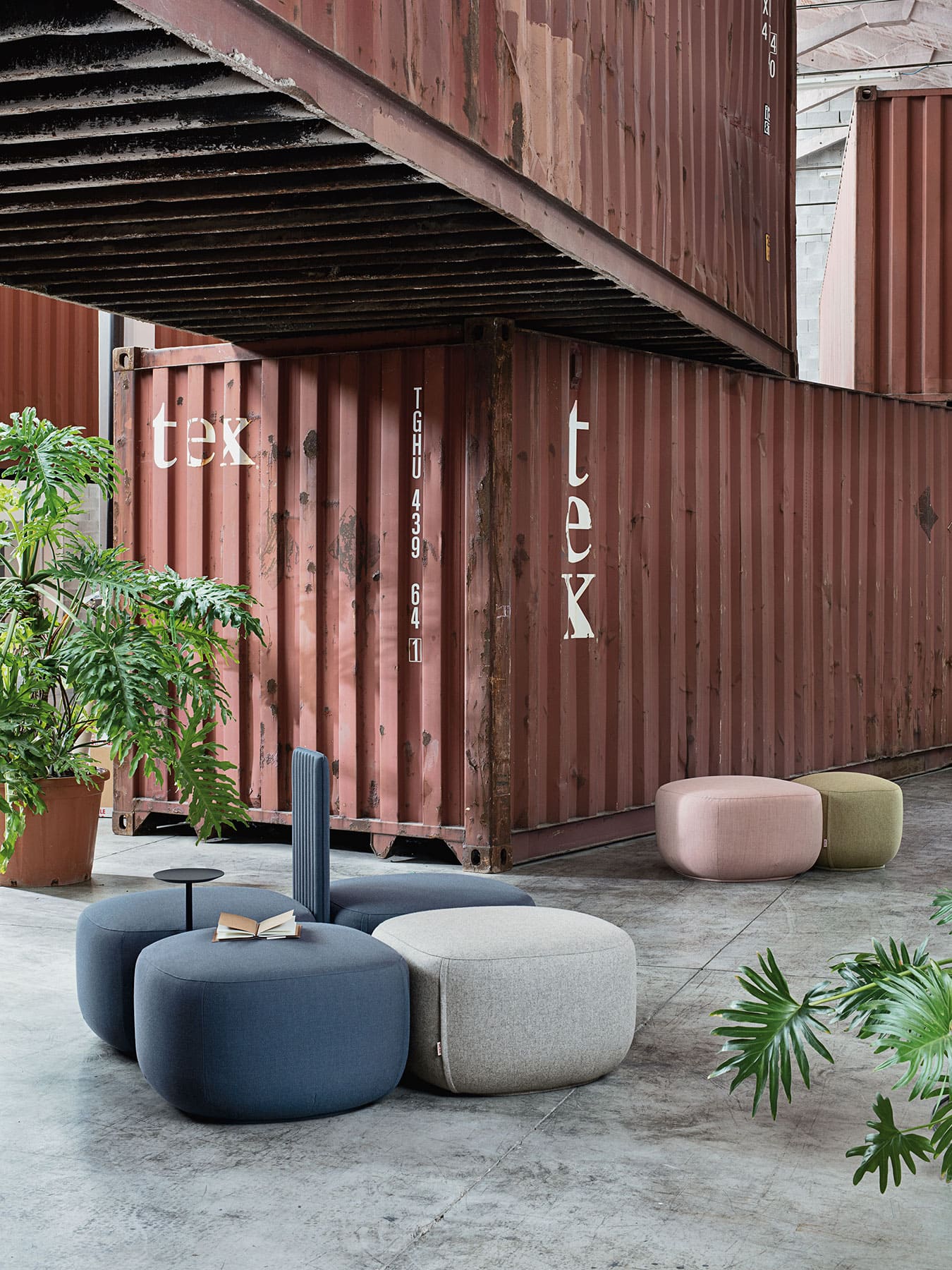 Bakku, design di Margherita Rui, è una collezione di pouf dalle forme organiche e dai volumi pieni. Declinati in quattro dimensioni, i pouf possono essere usati singolarmente o affiancati tra loro, per creare configurazioni di sedute informali. A completare la serie sono lo schienale ondulato, da applicare alla singola seduta o inserire tra due elementi, e il tavolino circolare.
