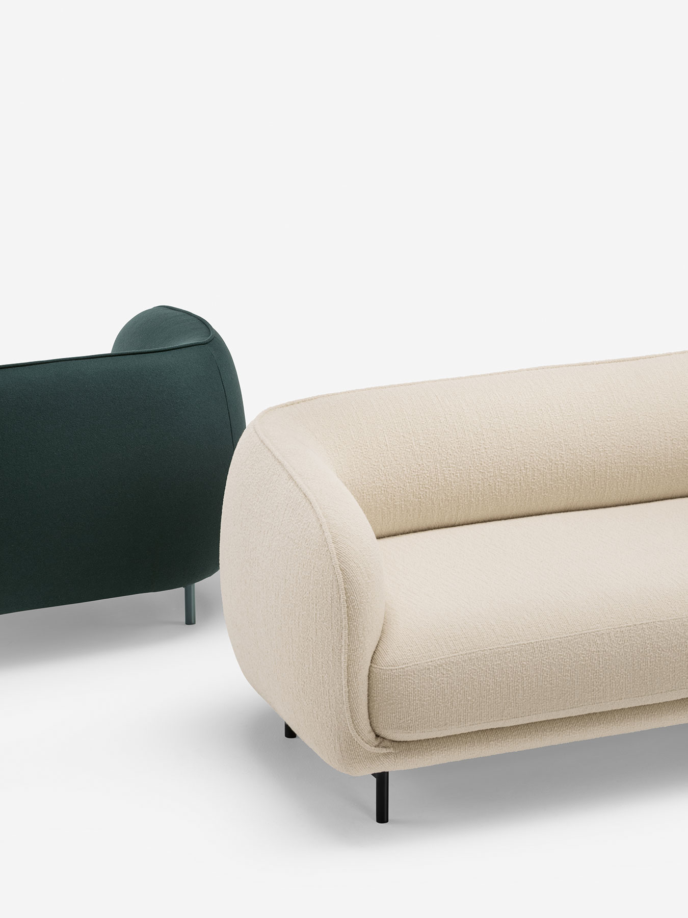 Hull è una collezione di poltrone e divani progettata da Skrivo a partire dalla forma avvolgente di uno scafo. Come in una barca, la seduta racchiude e protegge, offrendo un piacevole senso di comfort. Ai suoi volumi generosi fanno da contrappunto gambe sottili in acciaio rigido. Il bordo in tessuto è l’accento artigianale che testimonia l’impronta manifatturiera di Milani.
