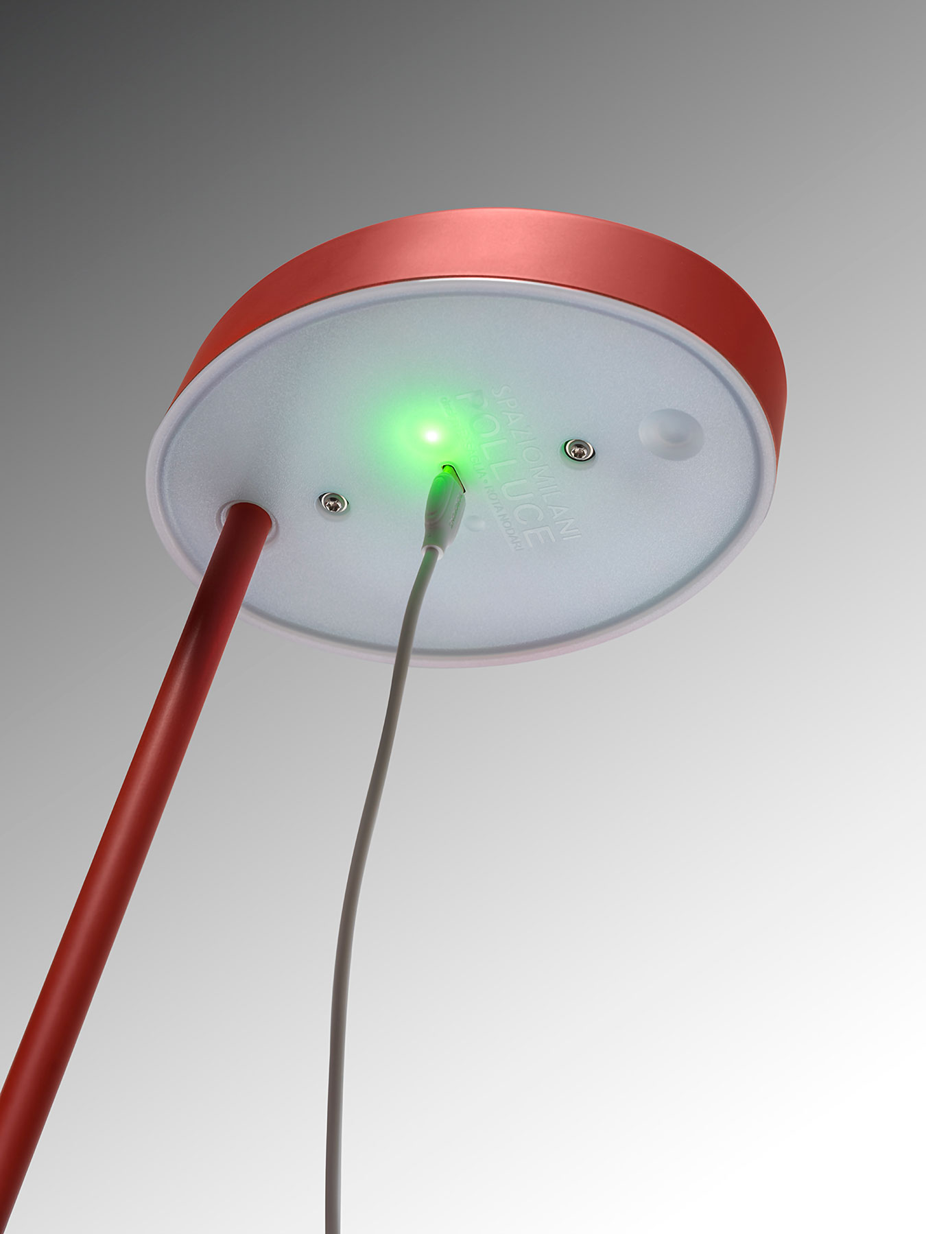 La lampada wireless Polluce gravita, come l’omonimo satellite, attorno alla collezione outdoor di Milani. Il corpo illuminante ruota come un’elica attorno all’asta, sostenuta da una base circolare. Il cono di luce proiettato può essere modulato in base alla sua posizione lungo il sostegno. Un sistema touch accende, spegne e modula la luce.
